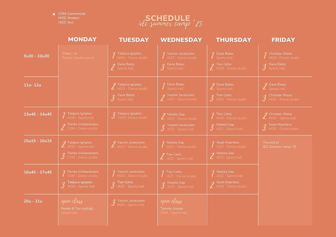 The camp takes place at the sporthall from De Panne, which consists of two big dance halls. All dance classes take place here.